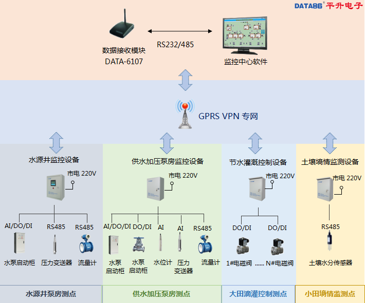 1. 采用GPRS VPN專網,解決監(jiān)控中心無固定寬帶網絡的難題。