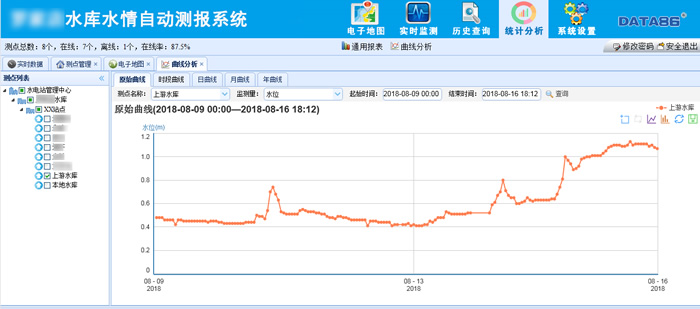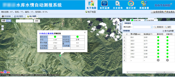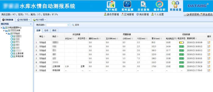 水電站水文實時監(jiān)測管理系統(tǒng)包含8個測點:6個雨量監(jiān)測站、2個水位雨量監(jiān)測站。